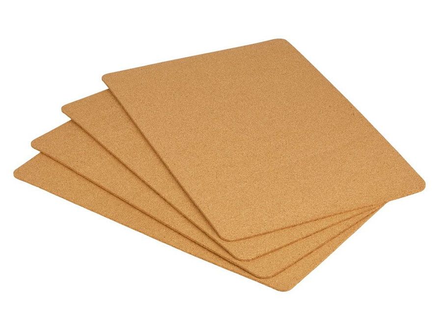 Двусторонние подставки изготовлены из пробкового дерева и имеют природный цвет и текстуру. Благодаря свойству этого материала не пропускать тепло, данный набор можно использовать и как подставки под горячее.