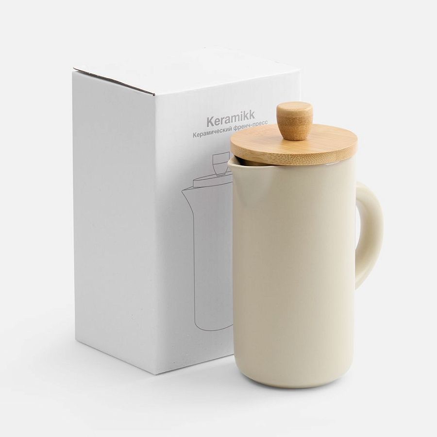 Френч-пресс Keramikk выполнен из керамики, благодаря чему он хорошо сохраняет температуру напитка, не обжигает руки и прост в уходе. Контраст бамбуковой крышки и керамики выглядит действительно интересно и необычно.Емкость 350 мл.