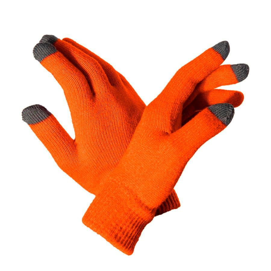 Перчатки из теплого и мягкого акрила с сенсорными наконечниками.Основной цвет: оранжевый. Цвет сенсорных вставок: серый меланж. Цвет, близкий к Pantone Orange 021 C.