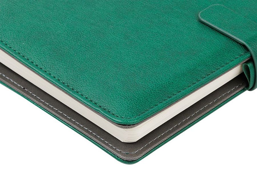 поролонированная обложка из высококачественной экокожи с декоративной нитью по периметру в тон ежедневника;
