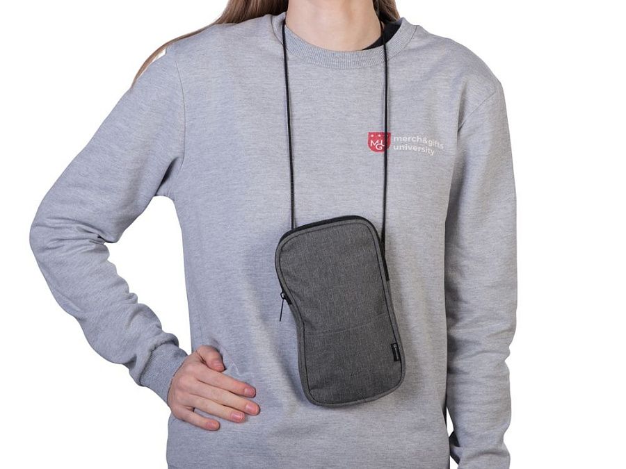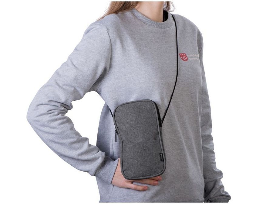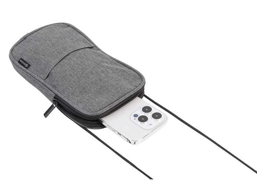 Мобильный чехол из полиэстера RPET. Основное отделение с застежкой-молнией. Внешний карман. В комплект входит шнурок для переноски. Длина шнурка 122 см.