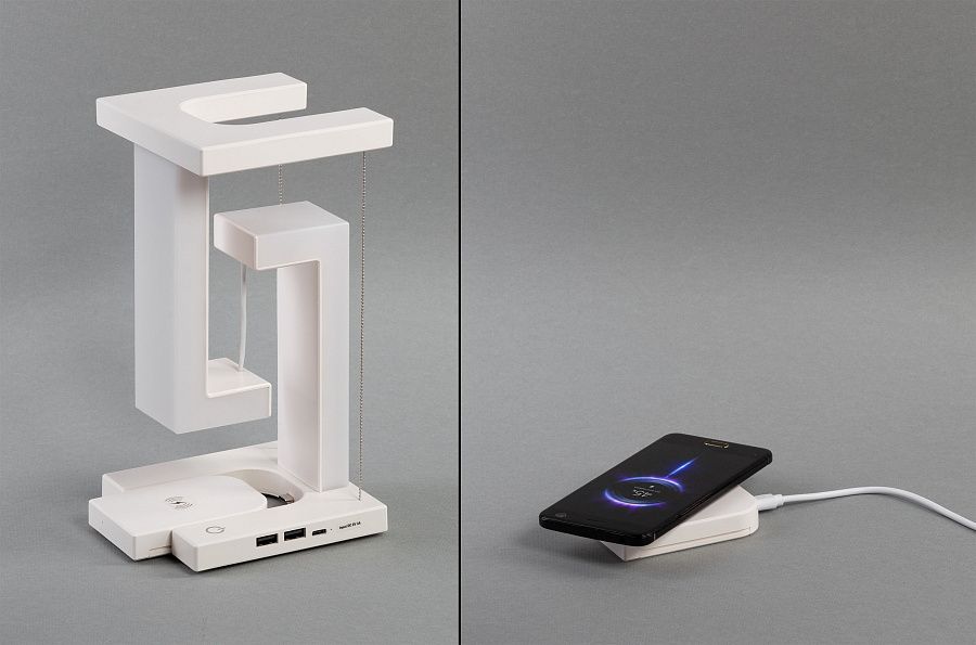 Особенностью этой лампы является встроенный съемный модуль для быстрой беспроводной зарядки мощностью 15W, который можно использовать отдельно. Также в наличии 2 USB-разъема для проводной зарядки.