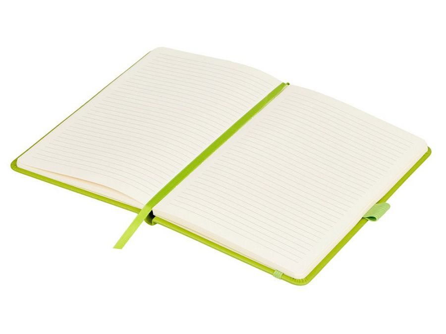 Блокнот в твердой обложке с закругленными углами представлен в широком ассортименте цветов. Внутри 80 листов кремового блока плотностью 70 г/м2 и ляссе в цвет обложки, которая упрощает навигацию по блокноту.