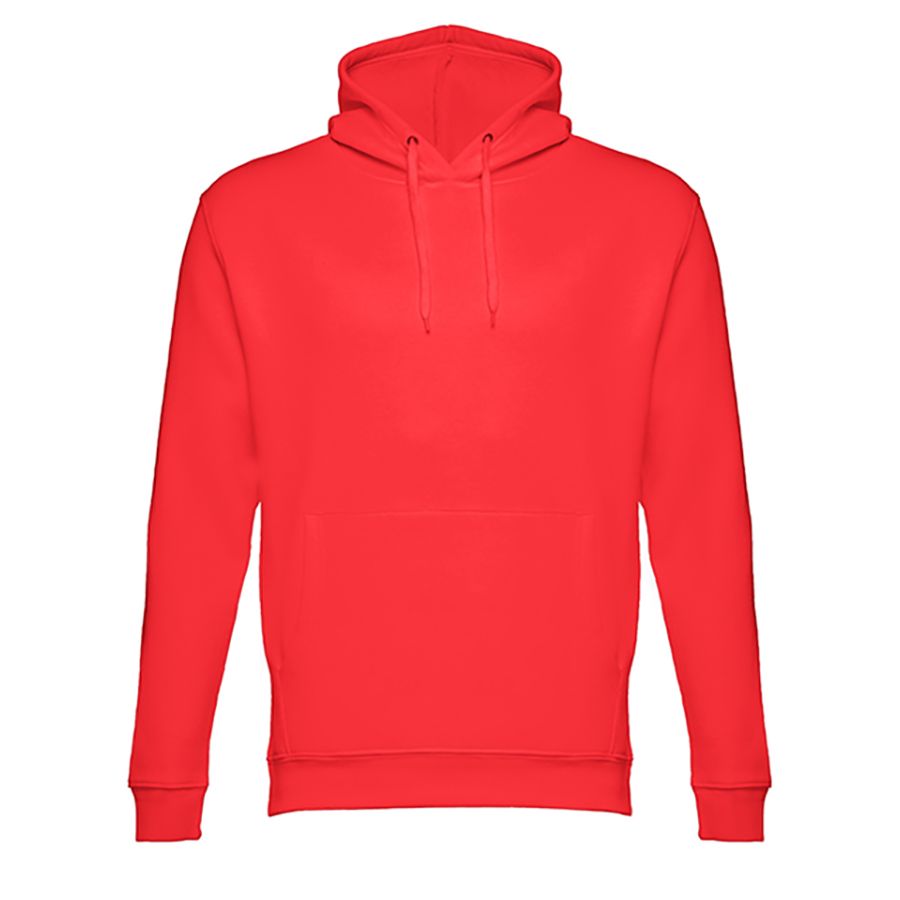 Толстовка унисекс с капюшоном. Внутренняя сторона с начесом. Манжеты и низ изделия обработаны рибом 1х1. Карман-кенгуру. Капюшон с отверстиями и кулиской в тон изделия.Цвет, близкий к Pantone 200 С