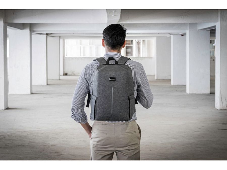 Надежный противокражный рюкзак из водостойкого материала, устойчивого к загрязнению. С уплотненным отделением для ноутбука 16'' для большей сохранности вашего гаджета. Оснащен молнией, смещённой к спине, что затрудняет несанкционированный доступ к содержимому рюкзака.