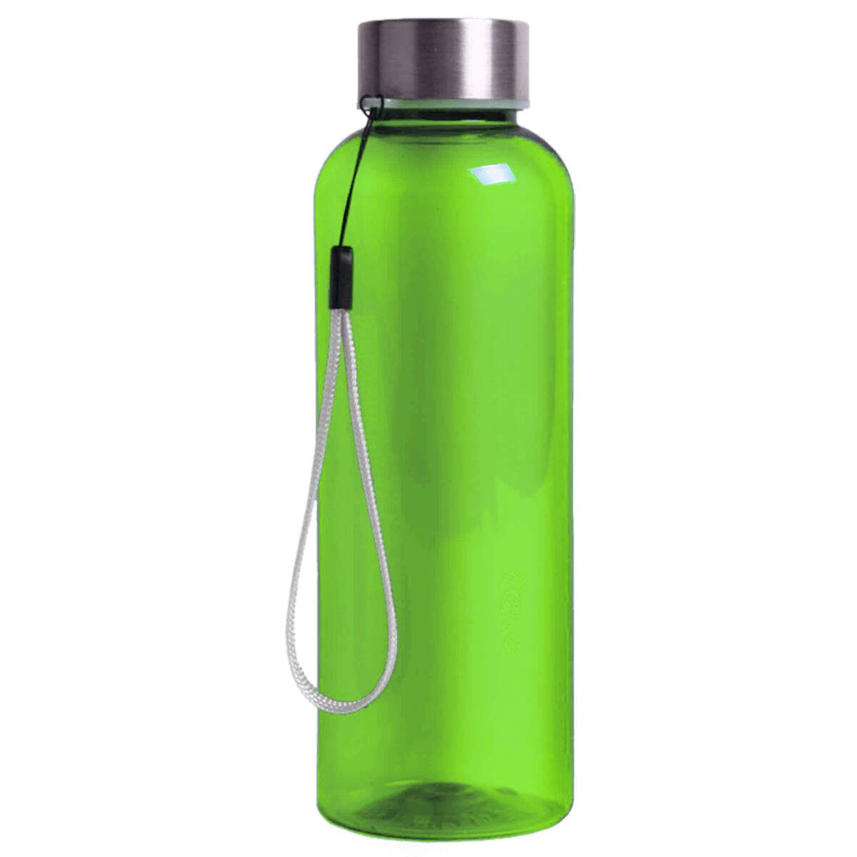 Пластиковая цветная бутылка с металлической крышкой.