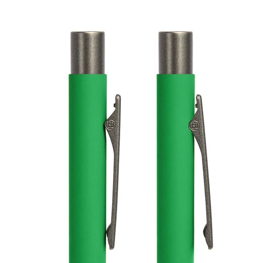 Модель ручки FACTOR – это оптимальный выбор для тех, кто предпочитает добротное качество, надежность и изящную простоту. Этой ручкой писать легко и удобно, она буквально скользит по бумаге благодаря качественным чернилам и надежному пишущему узлу. Все эти качества позволят ручке служить вам верой и правдой долгое время. А клип и корпус данной модели отлично подойдут для нанесения вашего логотипа. • Pantone, близкий к 348 С• Размер 140*10 мм• Корпус из алюминия с покрытием soft touch• Металлический клип-прищепка серого цвета • Пластиковые носик и кнопка в цвет клипа• Нажимной механизм подачи стержня• Пулевидный пишущий узел 1.0 мм• Длина линии письма 1000 м • Чернила Dokumental. Цвет чернил синий• Сменный стержень Parker type• При гравировке вскрывается натуральный цвет алюминия, который может быть либо более белый, либо более серого оттенка.Результат гравировки зависит от настроек оборудования!