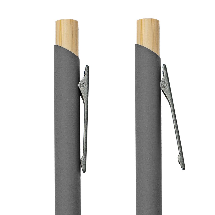 Экстравагантная модель ручки FRESCO. Корпус алюминиевый с матовым покрытием soft touch - ручку приятно держать в руке. Металлический клип-прищепка является эксклюзивом бренда В1. Отделка из натурального бамбука добавляет модели оригинальность. Кнопка нажимного механизма оптимального диаметра удобна для подушечки пальца. Визуально ручка выглядит очень благородно. В использовании гарантированно комфортна. • Цвет, близкий к Pantone Cool Gray 8C• Размер φ 10 x 140 мм• Корпус из алюминия с покрытием soft touch• Металлический клип-прищепка• Отделка - бамбук• Нажимной механизм подачи стержня• Пулевидный пишущий узел 1.0 мм• Длина линии письма 800-1000 м• Чернила Dokumental, цвет чернил синий• Сменный стержень Parker type• Виды нанесения: гравировка