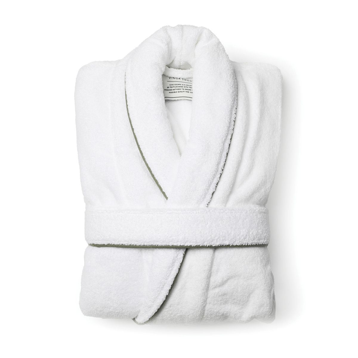 Халат VINGA Harper — это классическая модель унисекс с широким воротником и длинным поясом. Для большего комфорта мы сделали швы закрытыми, а для стильного внешнего вида добавили контрастную окантовку. Халат изготовлен из стопроцентного хлопка: благодаря длинному хлопковому волокну с некручеными нитями материал получается очень мягким и приятным на ощупь. Банный халат из хлопка — лучшее решение, поскольку это гипоаллергенный долговечный материал, который быстро впитывает влагу и хорошо держит форму.