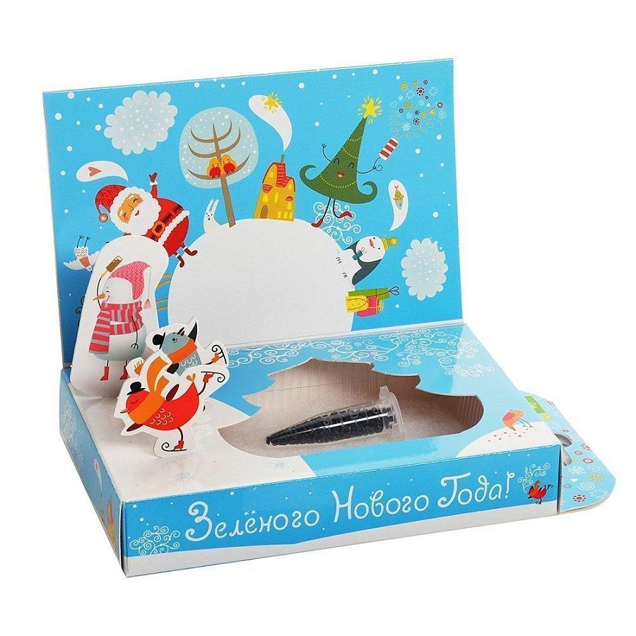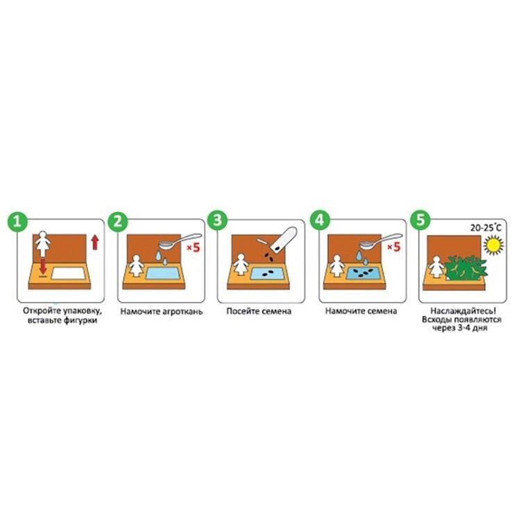 В наборе: коробочка с поддоном для выращивания, семена в герметичной колбе, специальный материал для проращивания, декор, инструкция