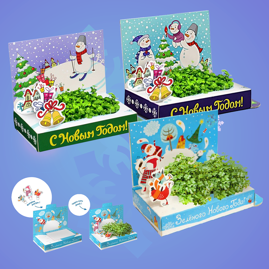Удивительный и очень оригинальный новогодний подарок. Посадите по инструкции семена из набора в специальную ткань и смотрите за тем, как с каждым днём разрастается ваш зелёный садик. Этот трогательный сувенир будет долго радовать вас своей свежестью.