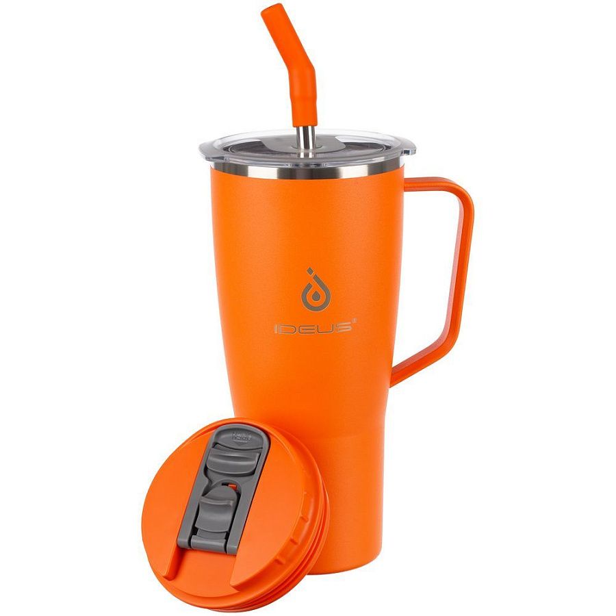 - 2 крышки в комплекте: одна на 100% герметичная с механизмом блокировки отверстия для питья, вторая — с отверстием для трубочки