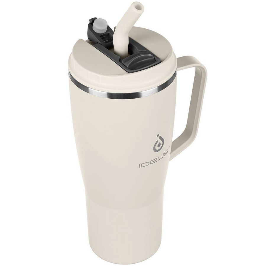 - 2 крышки в комплекте: одна на 100% герметичная с механизмом блокировки отверстия для питья, вторая — с отверстием для трубочки