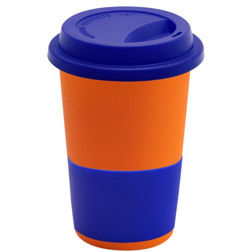 Термостакан X1 с цветной кнопкой, серый с оранжевым