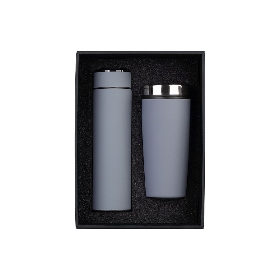 - Подарочные наборы с термокружкой серого цвета