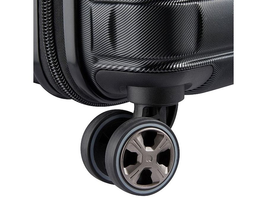 - Чемодан оснащен четырьмя бесшумными и очень маневренными колесами. Прочные и разнонаправленные, они были специально разработаны для обеспечения повышенного комфорта при движении.