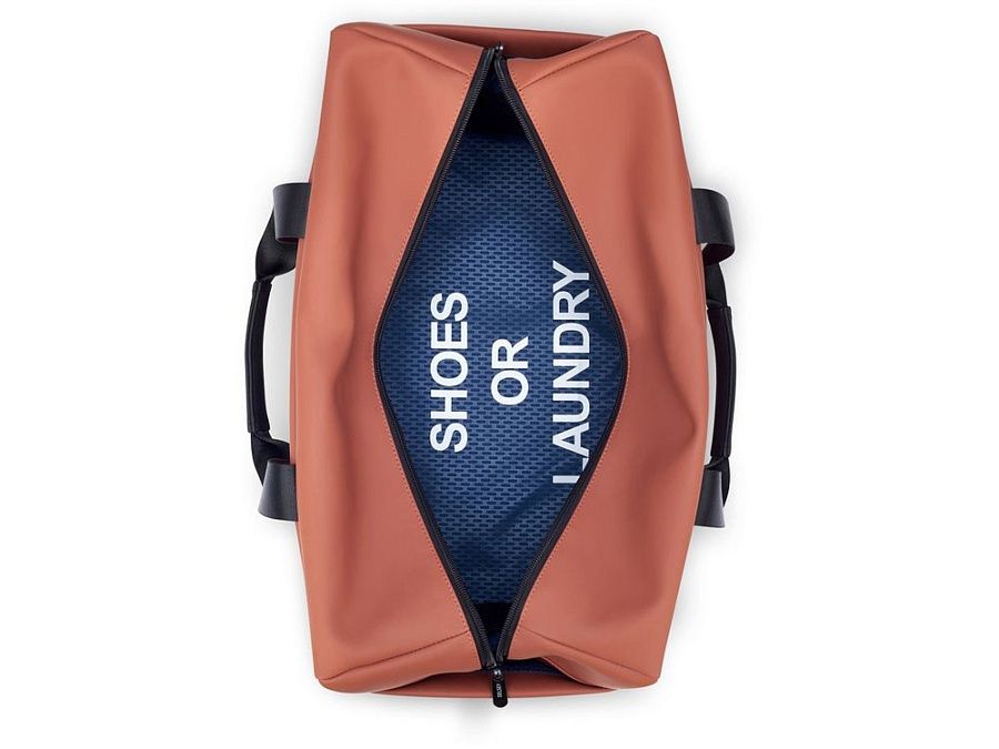 - Эта дорожная сумка имеет большое основное отделение, где есть два кармана для планшета и ноутбука. В этой сумке также есть карман для обуви или белья, доступный снаружи.