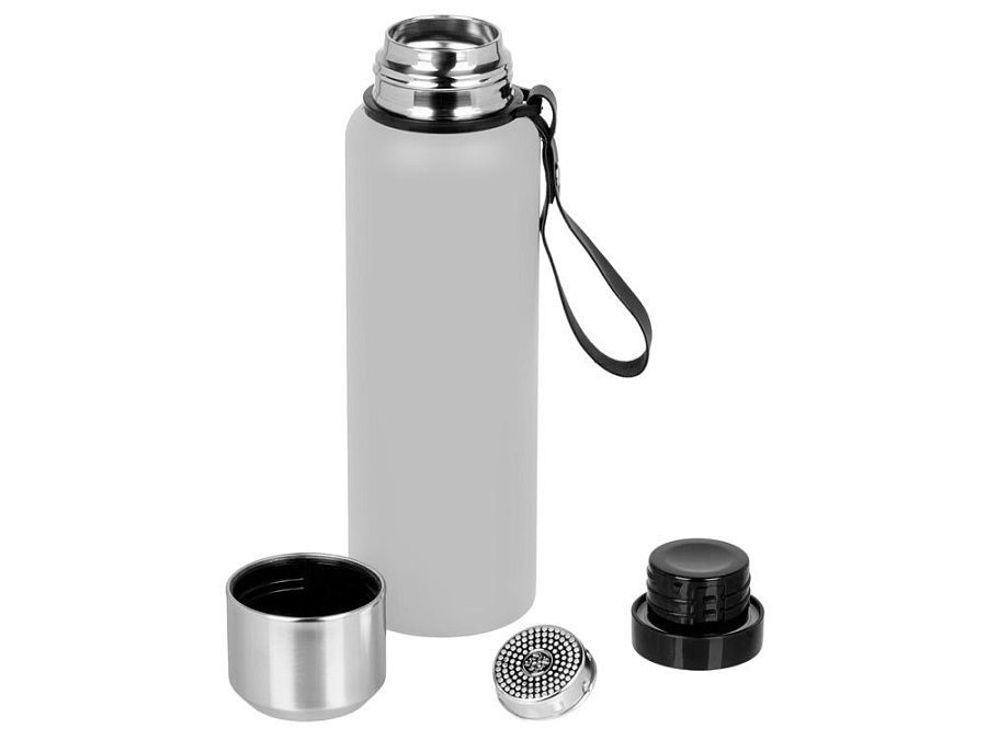 Вакуумный термос c двойными стенками из «пищевой» нержавеющей стали 304 марки для небольших путешествий и отдыха на природе. Надежно удерживает тепло и холод в течение 24 часов. Крышку можно использовать в качестве чашки. В комплекте имеется съемное ситечко из нержавеющей стали. Имеется прочный и удобный ремешок для переноски. Корпус покрыт специальной порошковой краской для надежного хвата и защиты от царапин. Объем 800 мл.