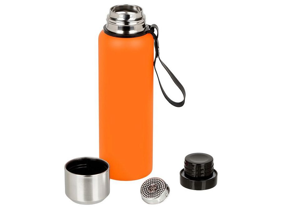 Вакуумный термос c двойными стенками из «пищевой» нержавеющей стали 304 марки для небольших путешествий и отдыха на природе. Надежно удерживает тепло и холод в течение 24 часов. Крышку можно использовать в качестве чашки. В комплекте имеется съемное ситечко из нержавеющей стали. Имеется прочный и удобный ремешок для переноски. Корпус покрыт специальной порошковой краской для надежного хвата и защиты от царапин. Объем 800 мл.