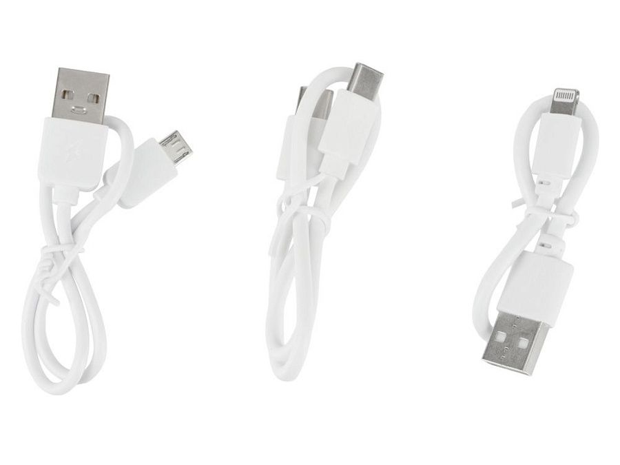 портативное зарядное устройство, usb кабель 2-в-1 (type-c, lightning) или три кабеля по отдельности (micro, type-c, lightning), инструкция