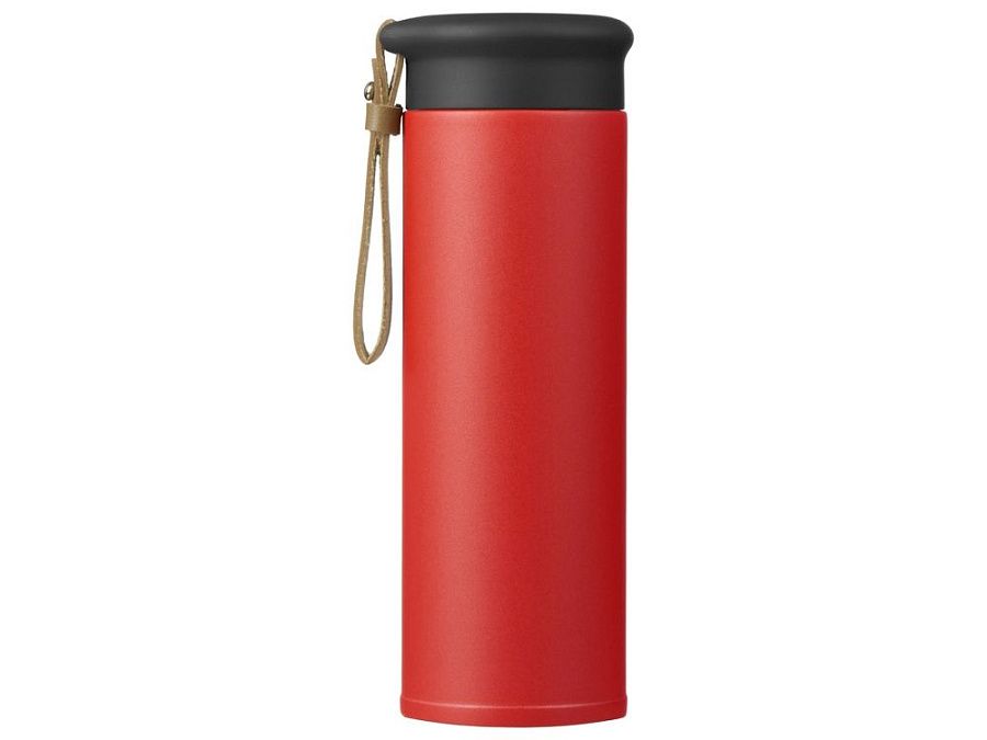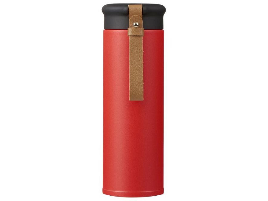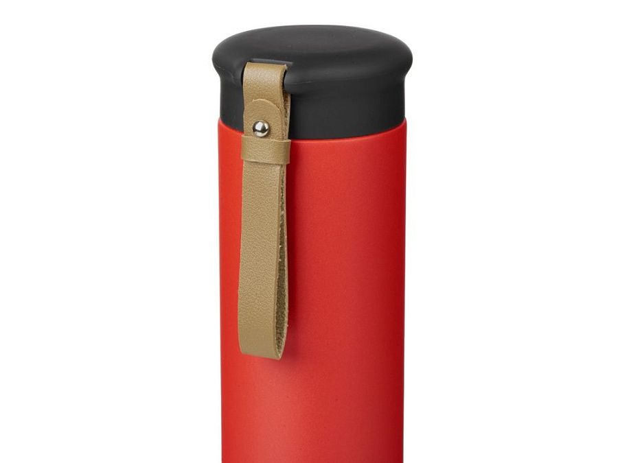Термос герметично завинчивается на крышку, оснащенную съемным ремешком из качественной ПУ кожи. Крышка имеет прорезиненное покрытие, что создает интересное сочетание текстур в рамках одной модели. Корпус имеет элегантную рельефную поверхность с антискользящим эффектом.