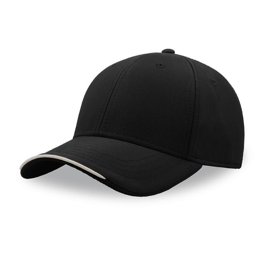 Плотная жаккардовая бейсболка ESTORIL с декоративным кантом по центру козырька. - 6 клиньев,- лобовой шов,- 6 вышивных люверсов для лучшей вентиляции,- изогнутый козырек с полной прострочкой,- контрастный кант в центральной части козырька, - застежка на липучке с пластиковой петлей.Цвет близкий к Pantone Black C.58,5 см - средний размер, с помощью застёжки его можно увеличить или уменьшить до необходимого.