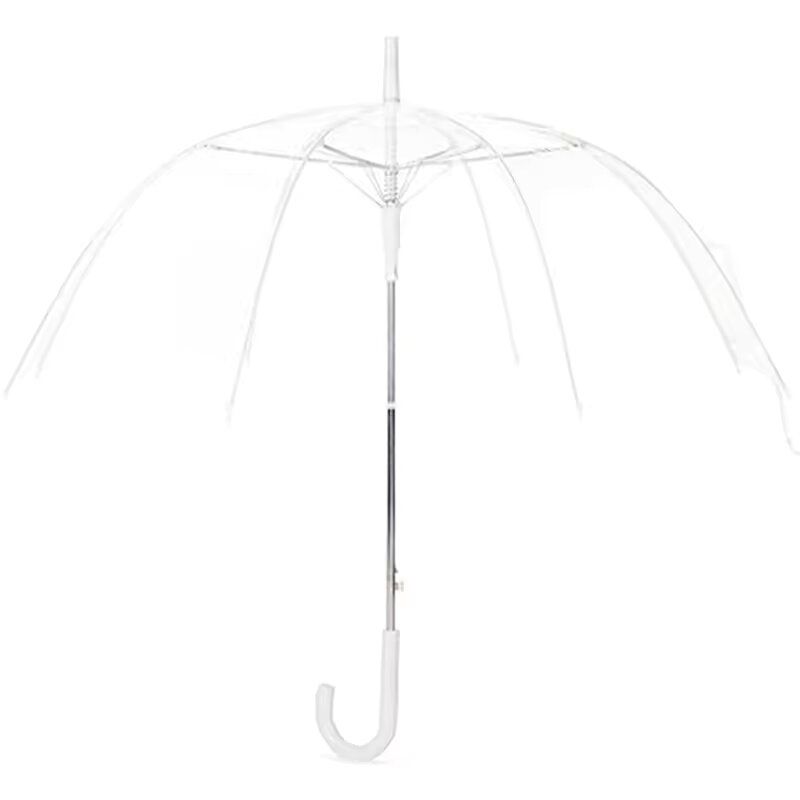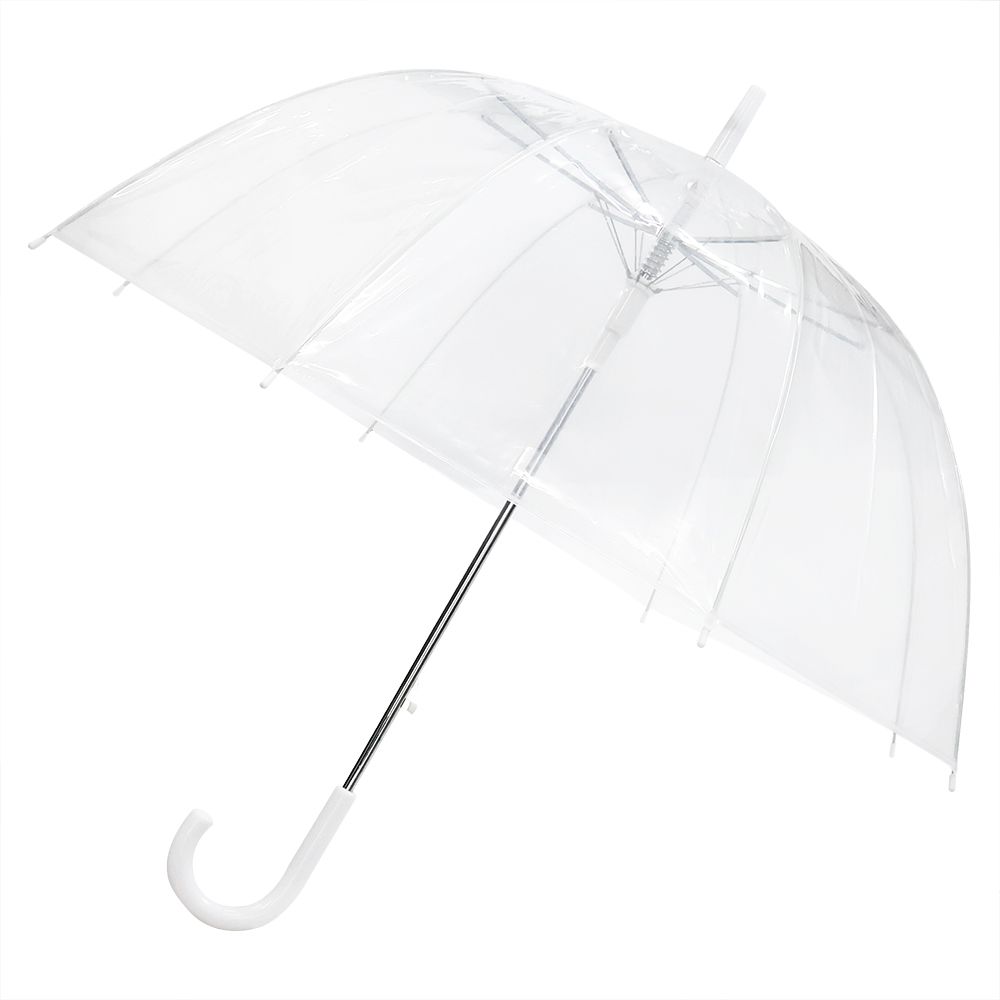 Зонт-трость с прозрачным куполом. Каркас выполнен из прочного металла, надежные спицы из стекловолокна. Поставляется без чехла.