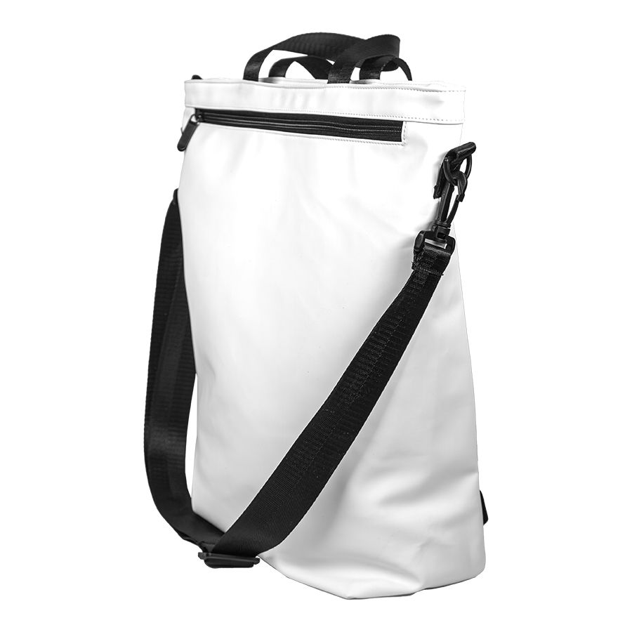 Рюкзак-сумка из 100% полиуретана. Можно использовать как сумку через плечо, можно носить как рюкзак. Лямки можно спрятать в карман. Ручка отстёгивается. Объём 15 литров.