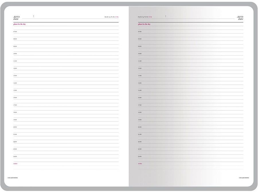 В ежедневнике «Sidney Nebraska» есть полезная справочная информация и телефонная книга на 18 листов, а также 272 страницы для записи идей, мыслей и составления рабочих планов. Специально для ежедневных офисных дел в ежедневнике используется качественная белая бумага плотностью 70 г/м². Разметка блока с указанием времени позволяет планировать дела с точностью до 1 часа.