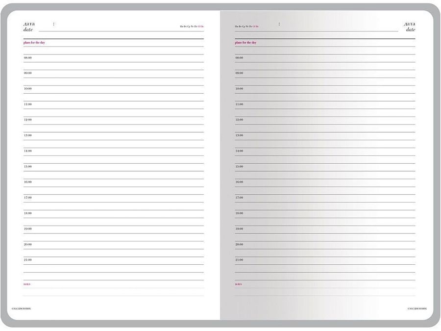 В ежедневнике «Sidney Nebraska» есть полезная справочная информация и телефонная книга на 18 листов, а также 272 страницы для записи идей, мыслей и составления рабочих планов. Специально для ежедневных офисных дел в ежедневнике используется качественная белая бумага плотностью 70 г/м². Разметка блока с указанием времени позволяет планировать дела с точностью до 1 часа.