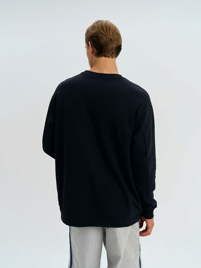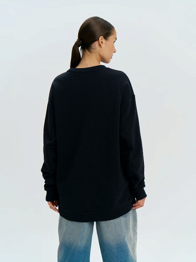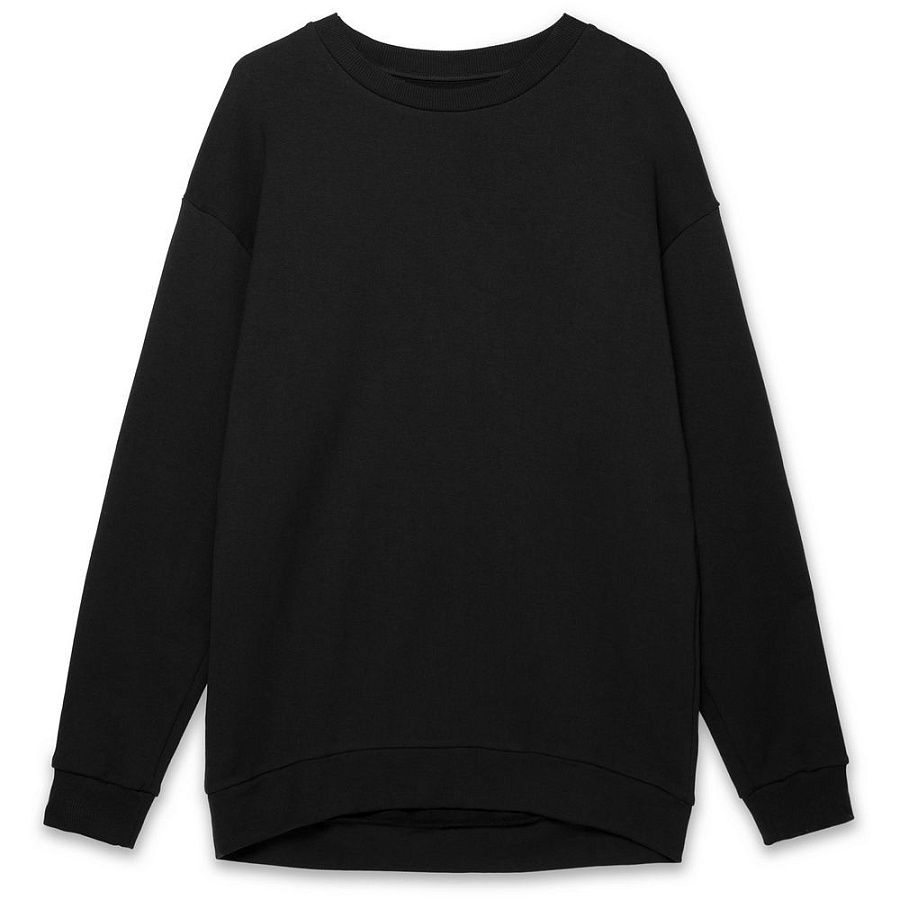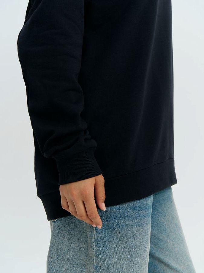Свитшот унисекс со спущенным плечом и удлиненной спинкой.
