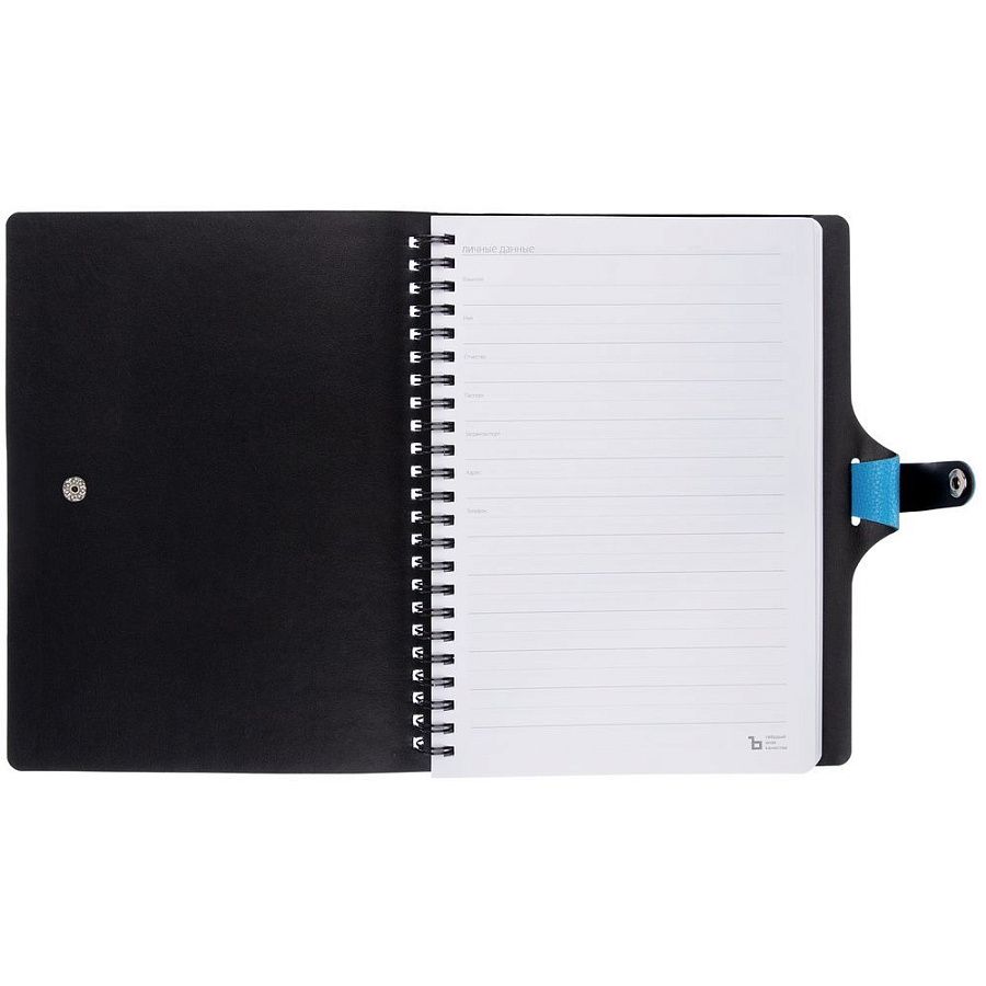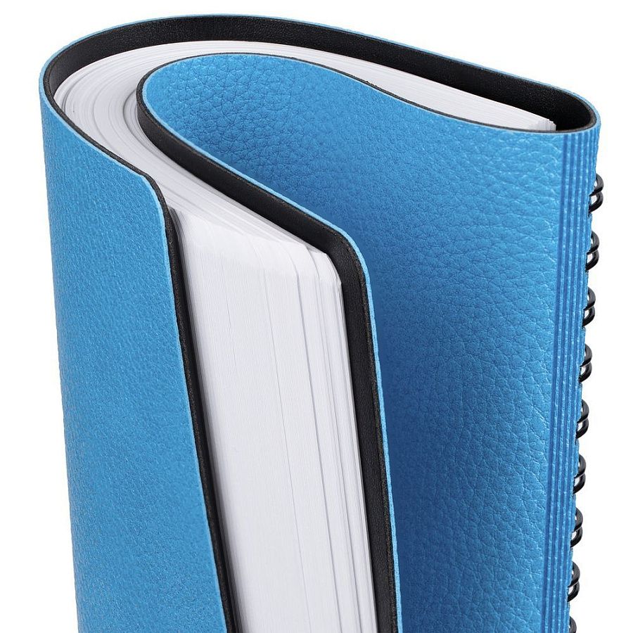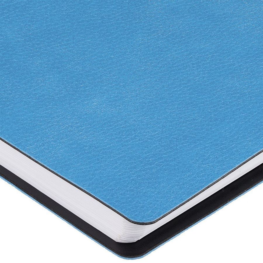 Ежедневник с гибкой обложкой, выполнен из материалов La Fite, голубой JJ и Waltz черный АА.