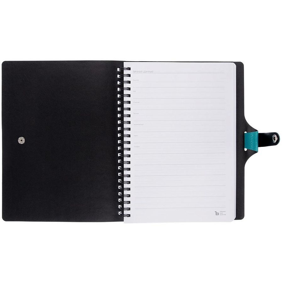 Ежедневник с гибкой обложкой, выполнен из материалов La Fite, цвет морской волны II и Waltz черный АА.