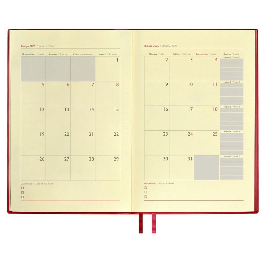 • Датированные ежедневники красного цвета