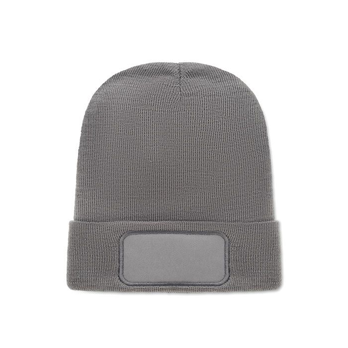 Трикотажная шапка унисекс из мягкого переработанного полиэстера с манжетой и нашивкой.