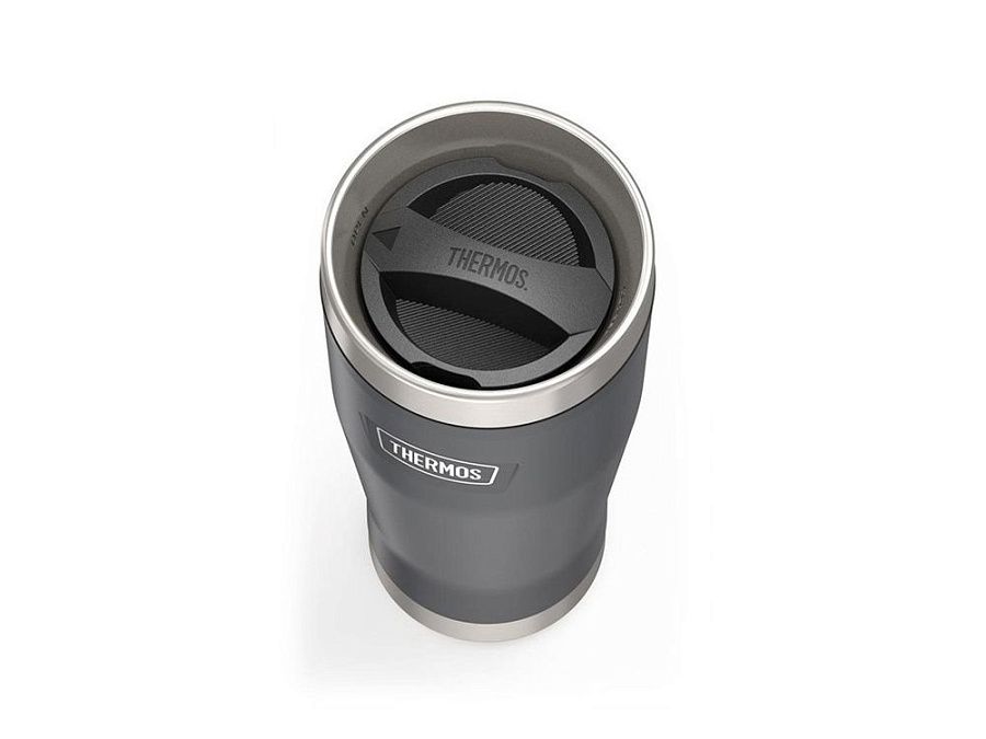 Удобство пользования обеспечивает еще один запатентованный элемент термоса – двойная конструкция крышки-пробки Dura-Seal™, благодаря которой из термокружки можно пить даже на ходу. Для питья из термокружки достаточно повернуть ручку внутренней части пробки на пол-оборота, не снимая крышку-пробку полностью. На верхней части крышки-пробки предусмотрен указатель положения «оpen»/«close» (открыто/закрыто) в виде стрелочки. В отличие от обычных термокружек, верхний борт термокружки IS-1012 GT изготовлен из коррозионностойкой пищевой стали, что значительно увеличивает срок её службы и обеспечивает максимальную гигиеничность. Крышка-пробка легко разбирается для тщательного очищения всех деталей. Конструкция крышки-пробки позволяет использовать кубики льда для сохранения напитков прохладными максимально долгое время – они не выпадут при питье.