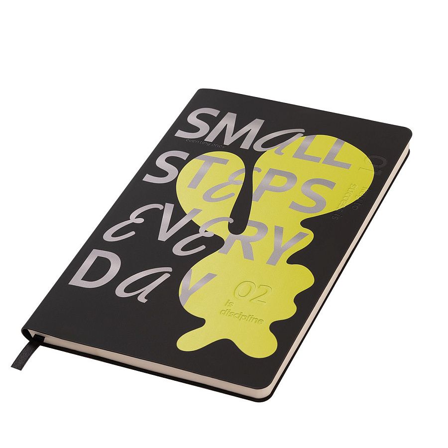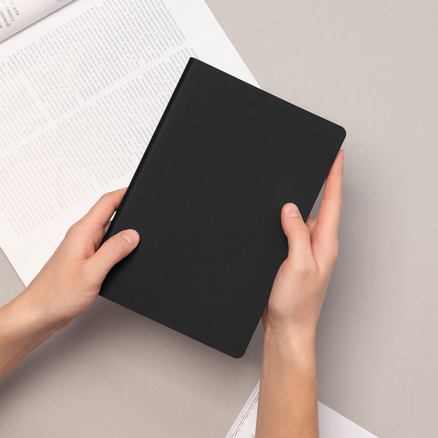 Матовое покрытие Soft Touch с деликатным пудровым эффектом подарит неповторимое тактильное удовольствие. А кремовые форзац, нахзац и срез блока создадут гармоничное обрамление для гладких шелковистых страниц кремового оттенка. Элегантное атласное ляссе поможет вам легко ориентироваться в записях.