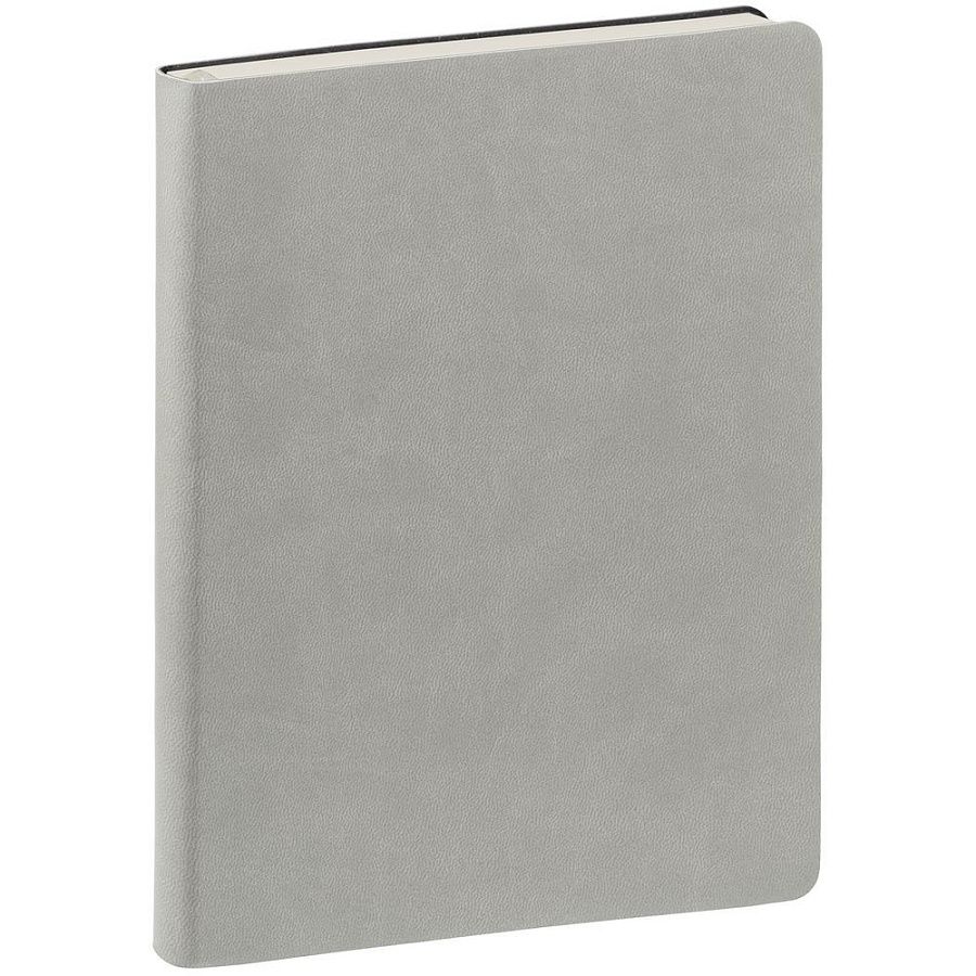 Ежедневник с гибкой обложкой, выполнен из материала Latte, серый, дополнен ляссе в цвет обложки.