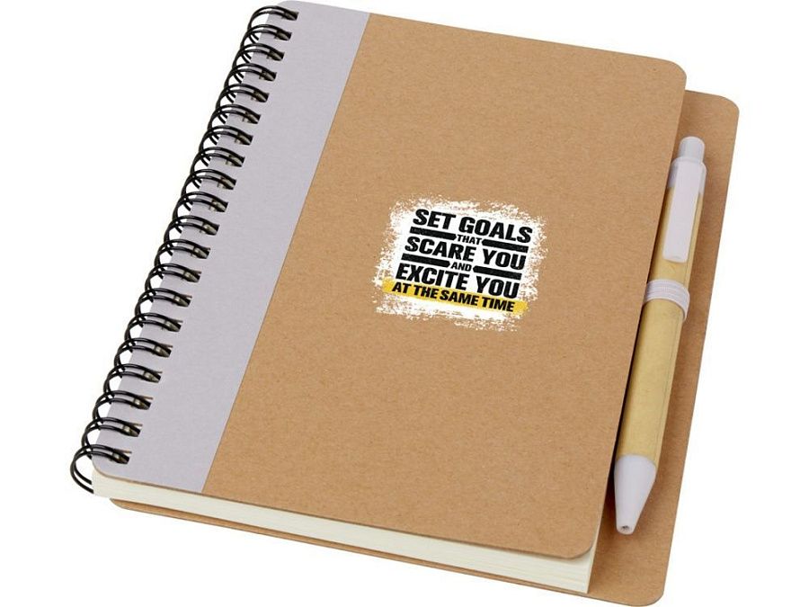 Блокнот Priestly с ручкой. Блокнот с 60 листами линованной бумаги вторичной переработки и ручкой под цвет блокнота. На обложку блокнота и ручку можно нанести яркий логотип.