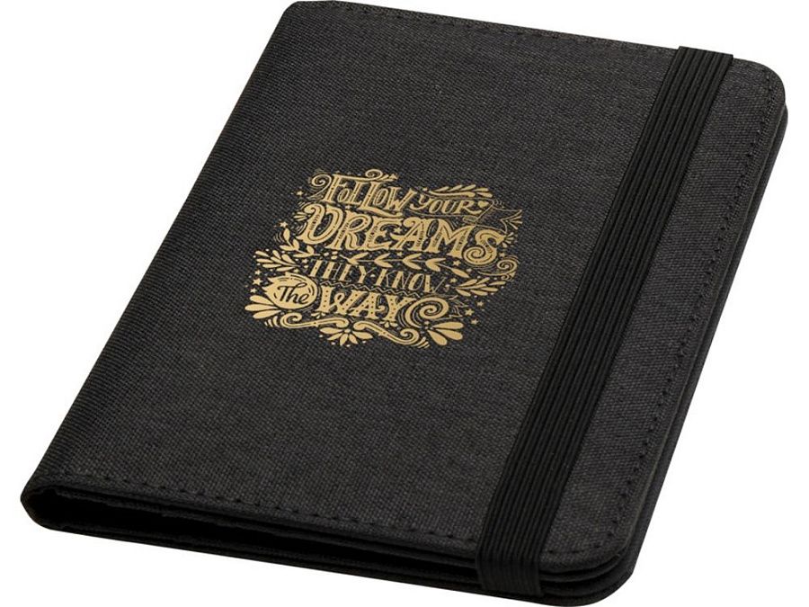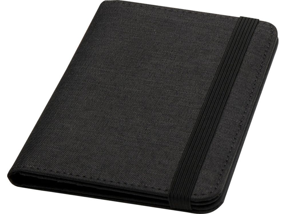RFID-держатель для паспорта Ross изготовлен из переработанного полиэстера и идеально подходит для людей, постоянно находящихся в пути, благодаря специальным карманам для паспорта, билетов, кредитных карт и других предметов. Поставляется с эластичной застежкой, обеспечивающей сохранность содержимого. 300DGRS certified recycled polyester.