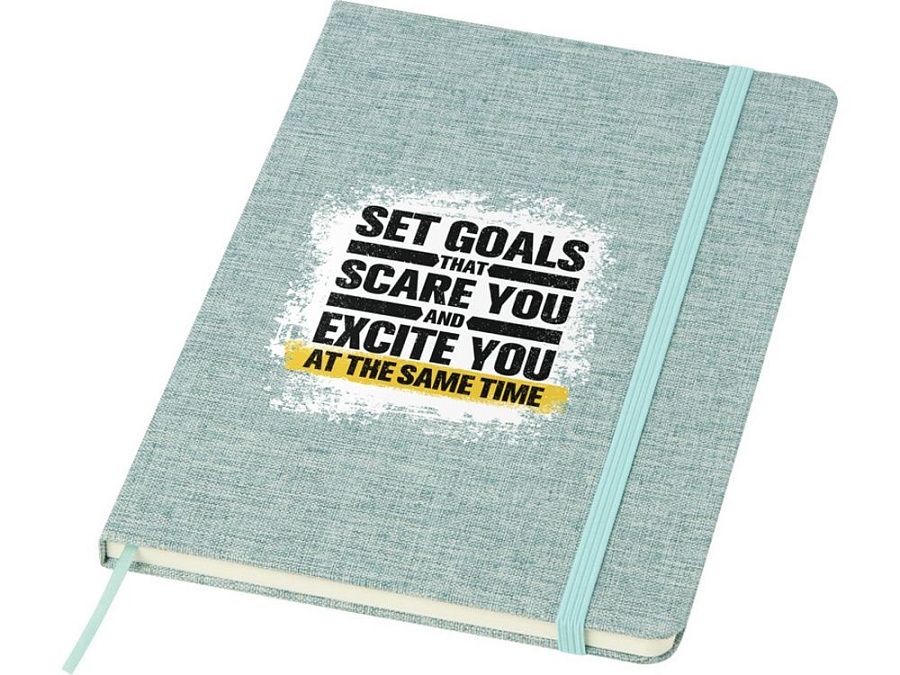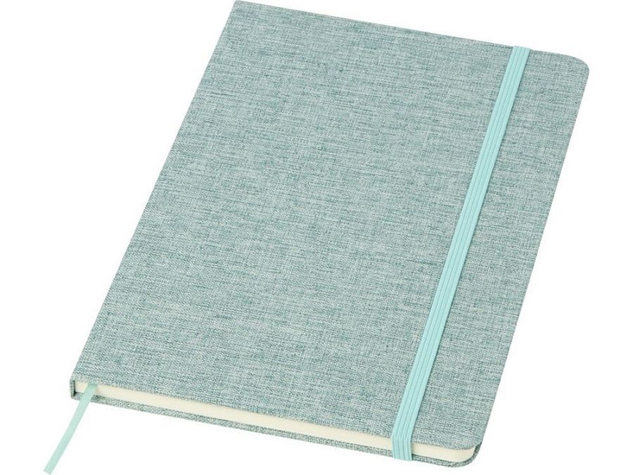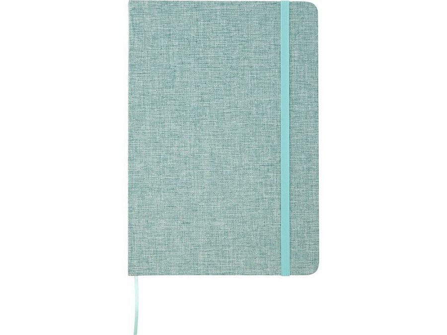 Блокнот формата А5 в твердой обложке из переработанного хлопка, 80 листов бумаги плотностью 70 г/м² в линейку. Блокнот имеет эластичную застежку, ленту и закругленные углы. FSC certified paper. FSC Mix Credit P7.1 CU-COC-877277.