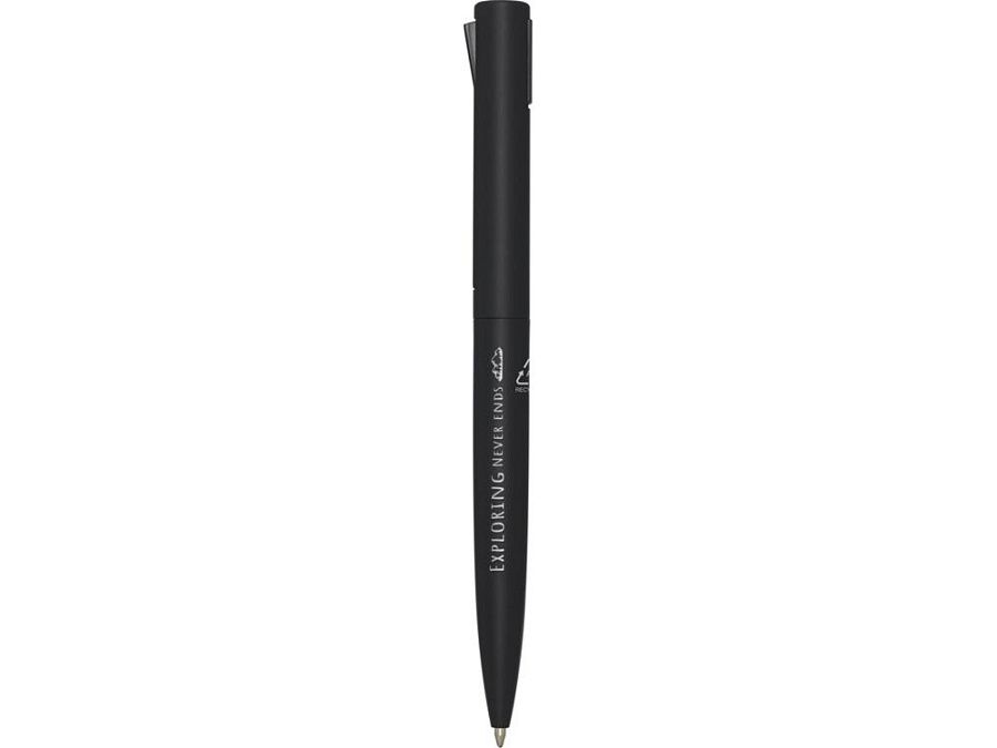 Шариковая ручка, верхняя часть корпуса которой изготовлена из переработанного пластика, а нижняя часть — из переработанного алюминия. Зажим изготовлен из железа. Цвет чернил: черный. Длина непрерывной линии: 1000 метров. Размер пера: 1,0 мм. Recycled Aluminium.