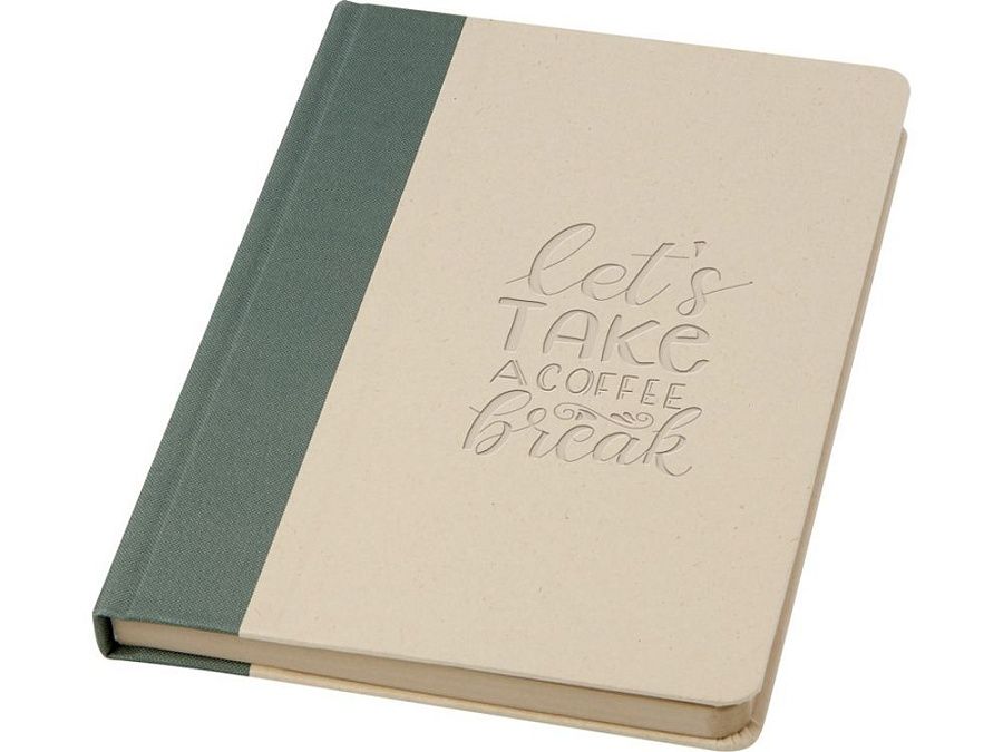 Liliana блокнот формата А5 в твердой обложке со скругленными углами и 80 линованными листами бумаги плотностью 90 г/м². Крышка изготовлена из RPET и пластика из сахарного тростника. Fruit paper.
