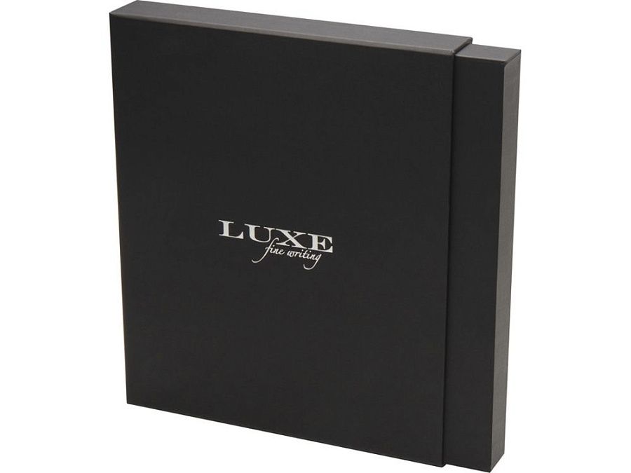 Legato — это элегантное сочетание блокнота формата А5 и ручки-роллера. Ручка имеет верхний корпус из переработанной латуни с золотым хромированием, нижний корпус с черно-коричневым напылением, металлические хромированные аксессуары из золота и логотип LUXE на среднем кольце. Цвет чернил: черный. Длина непрерывной линии: 400 метров. Размер пера: 0,7 мм. В блокноте 80 листов разлинованной бумаги плотностью 80 г/м², обложка из переработанного пластика, эластичная застежка, закладка-лента и карман-гармошка. Металлический аксессуар из хромированного золота на эластичной застежке. Поставляется в подарочной коробке из переработанного картона. FSC certified paper, Recycled brass. #?0:>2:0: FSC Mix Credit P5.1 CU-COC-877277. FSC Mix Credit P7.1 CU-COC-877277.