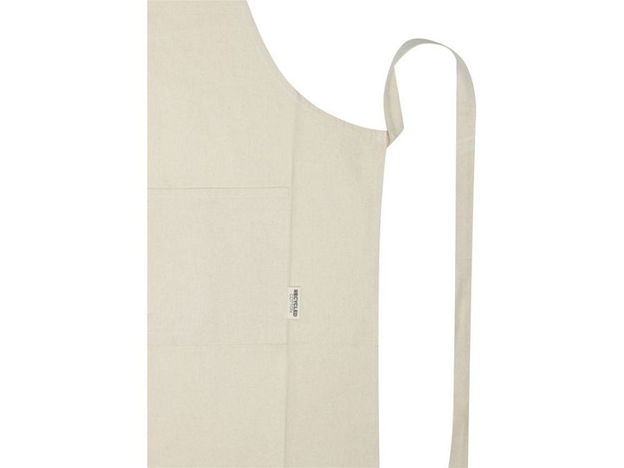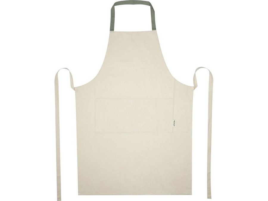 Фартук Nia изготовлен из 100% сертифицированного GRS переработанного хлопка плотностью 200 г/м². Этот фартук из натурального хлопка с контрастной петлей на шее защитит вашу одежду во время приготовления пищи. Фартук Nia с двумя соседними карманами общим размером 45 x 20 см и завязками длиной 1 метр обеспечивает обеспечивает практичность и стиль на вашей кухни. GRS certified recycled cotton, 210 g/m2.
