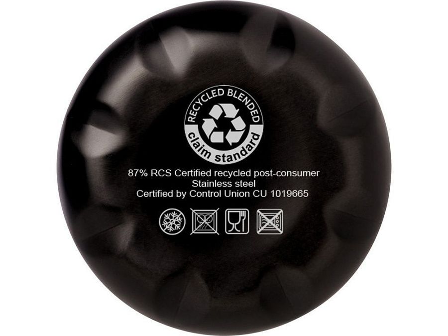 Бутылка из переработанной нержавеющей стали с вакуумной изоляцией и культовым дизайном, сертифицированная RCS, сохраняет напитки горячими или холодными в течение нескольких часов. Эта элегантная бутылка для воды с основанием, подходящим для большинства подстаканников, станет идеальным носителем вашей рекламы. Протестировано и одобрено согласно немецкому законодательству о безопасности пищевых продуктов (LFGB), а также проверено на содержание фталатов согласно нормам REACH. Объем составляет 500 мл. Поставляется в подарочной коробке из переработанного картона. Recycled stainless steel, Recycled PP Plastic. Packaging: FSC Mix Credit P5.1 CU-COC-877277.