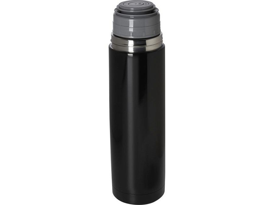 Изолированная колба с двойными стенками и крышкой, сертифицированная RCS. Кнопочный носик, управляемый одной рукой, который автоматически закрывается при привинчивании крышки-чашки к бутылке. Объем 750 мл. Recycled stainless steel.