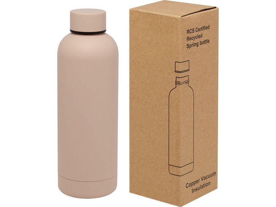Бутылка из нержавеющей стали, сертифицированная RCS, с медной вакуумной изоляцией и лаконичным дизайном. Изолированная конструкция из нержавеющей стали предотвращает образование конденсата внутри бутылки, а модное матовое порошковое покрытие делает бутылку особенно прочной. Не содержит БФА, протестирована и одобрена в соответствии с немецким законодательством о безопасности пищевых продуктов (LFGB). Проверена на содержание фталатов и одобрена для использования в соответствии с правилами REACH. Объем 500 мл. Рекомендуется мыть вручную. Поставляется в подарочной коробке из переработанного картона. Recycled stainless steel.