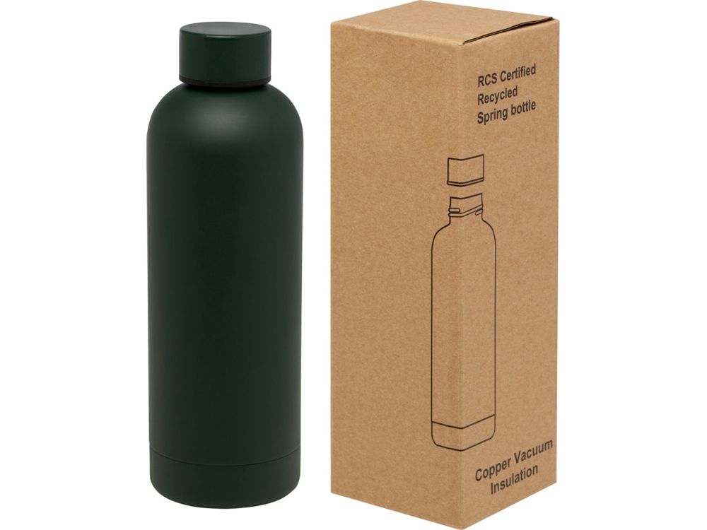 Бутылка из нержавеющей стали, сертифицированная RCS, с медной вакуумной изоляцией и лаконичным дизайном. Изолированная конструкция из нержавеющей стали предотвращает образование конденсата внутри бутылки, а модное матовое порошковое покрытие делает бутылку особенно прочной. Не содержит БФА, протестирована и одобрена в соответствии с немецким законодательством о безопасности пищевых продуктов (LFGB). Проверена на содержание фталатов и одобрена для использования в соответствии с правилами REACH. Объем 500 мл. Рекомендуется мыть вручную. Поставляется в подарочной коробке из переработанного картона. Recycled stainless steel.