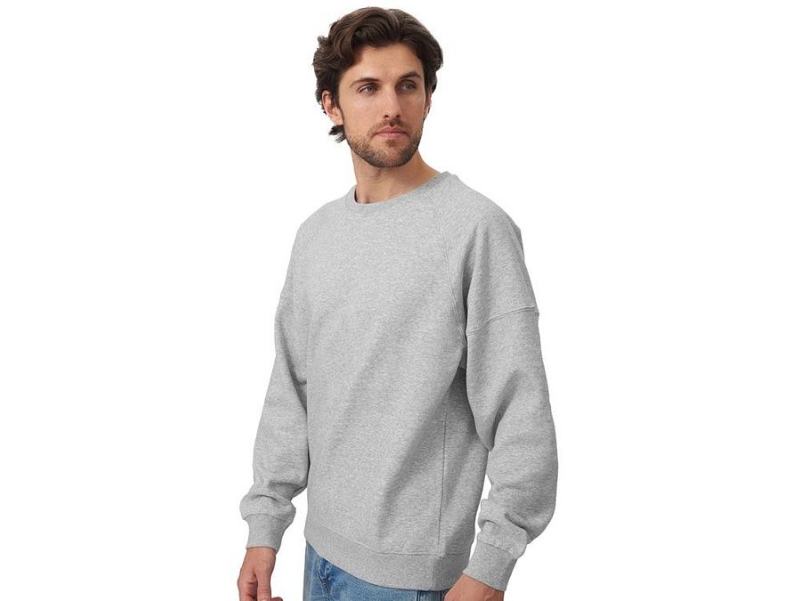 Главная особенность этого свитшота оверсайз — необычный рукав из двух частей: верхней — реглан до середины предплечья — и нижней, которая заканчивается резинкой. Благодаря такому необычному крою свитшот сидит комфортно по фигуре.